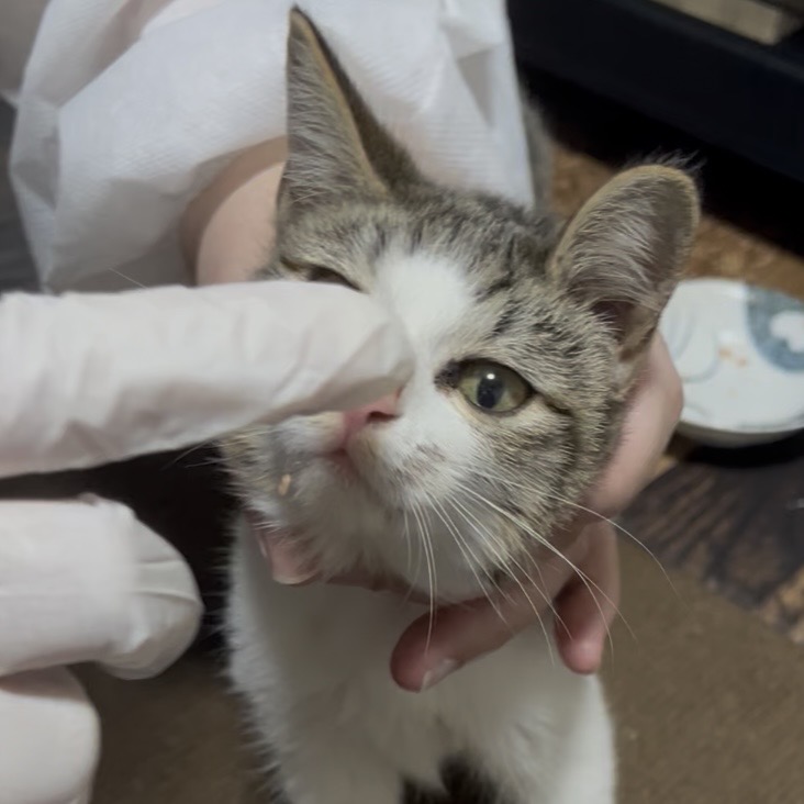 ここから、二人がかりのケアが始まります。ココの部屋に入る前にはつなぎを着て手袋を装着、部屋を出るときは手足の消毒を徹底する。先生には「そこまでしなくても(笑)」と苦笑いされましたが、多頭飼いの我が家ではナナとミミにうつすわけにはいきません。見た目は完全に「怪しい業者」でしたが、私たちは必死でした。