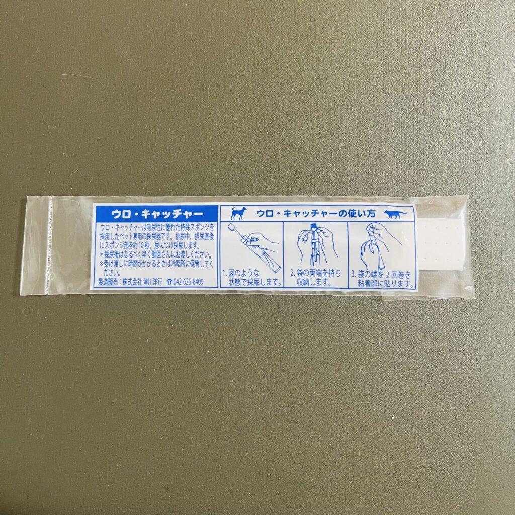 ついにその時が来ました——採尿成功!すぐさまスティックを袋に収め、ココをキャリーへ。